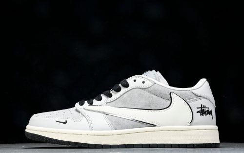 Travis Scott AJ1 Low x Stussy 'Grey White 2.0' (Custom)
