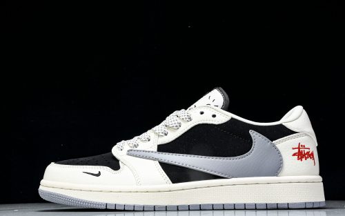 Travis Scott AJ1 Low x Stussy 'White Black Grey Red' (Custom)