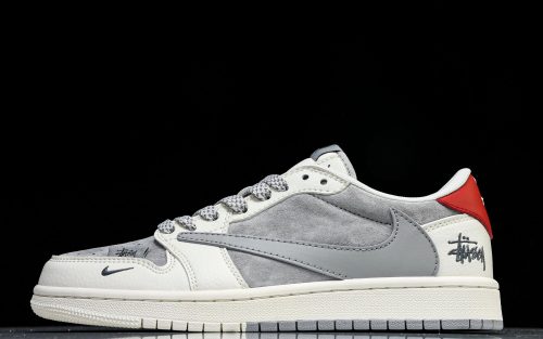 Travis Scott AJ1 Low x Stussy 'Grey White Red' (Custom)