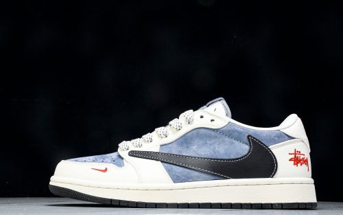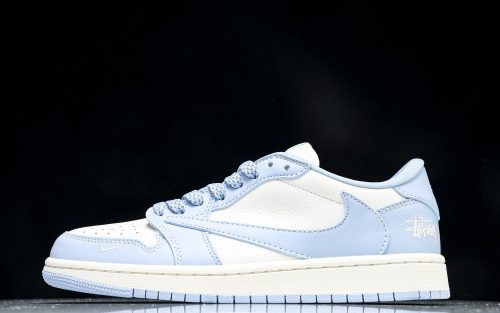 Travis Scott AJ1 Low x Stussy 'White Blue' (Custom)