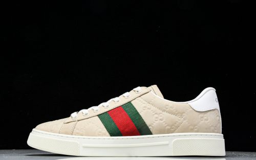 Guссi Ace Web 'Embossed Beige Monogram'